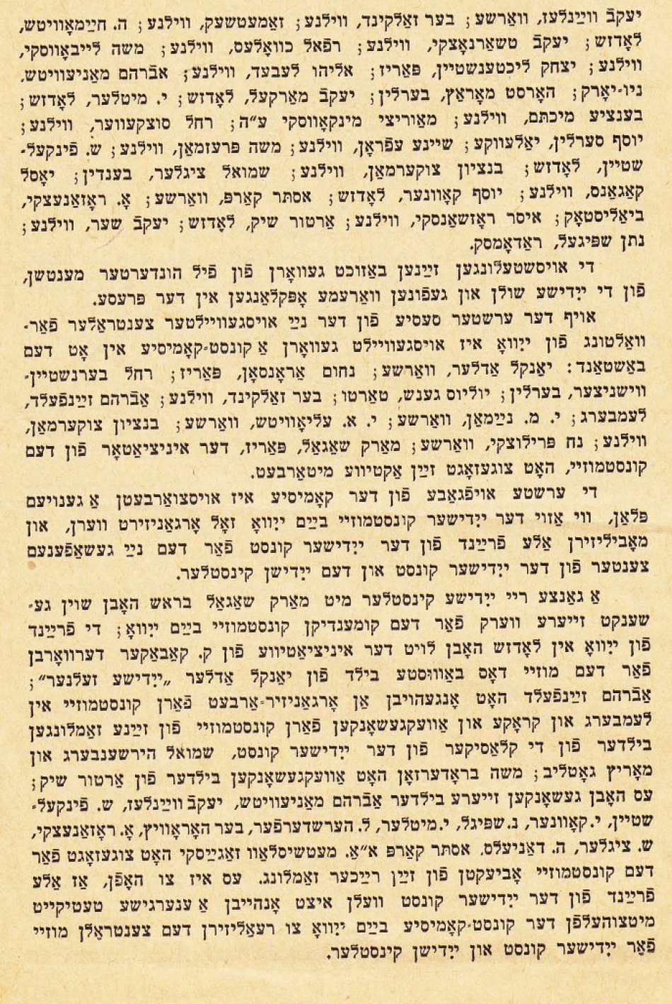 In August 1935, YIVO inaugurated a new art museum, during its international conference, when the YIVO building was full of scholars from around the world, as well as other visitors. As the December 1935 issue of Yedies reported, the ribbon was cut on a new gallery named in honor of Rive Eitingon. The first exhibition was of engravings by Marc Chagall, who was there in person. In fact, Chagall was credited as “the initiator of the art museum, who has promised his active cooperation.” Speeches were delivered by the eminent historian Simon Dubnow, journalist Zalmen Reyzen, Vilna Troupe actor Avrom Morevski, and others. Another gallery featured an exhibition of sculptures by Jewish artists, including works by Yankl Adler, Maurycy Minkowski, and Arthur Szyk.